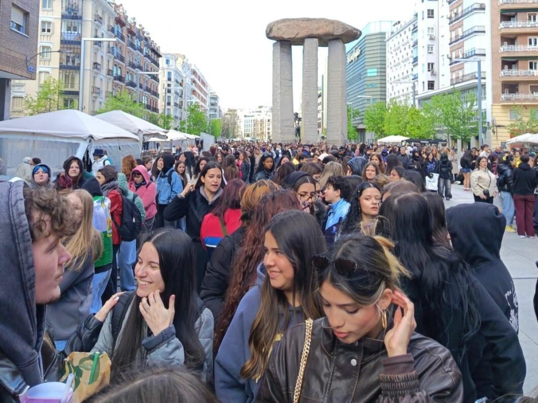 Mucha gente acumulada. Atrás se pueden ver edificios.